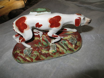 ANTIQUE STAFFORDSHIRE DOG FIGURINE HUNTING ENGLAND HAND PAINTED POTTERY ANIMAL