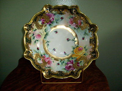 Title (ebay affiliate link): Antique Hand Painted NIPPON Bowl Gold Beaded Moriage - BLUE Maple Leaf Mark - NR