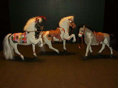 Title (ebay affiliate link): Vintage Toy Horses Suede and Plastic with glass eyes fake fur manes