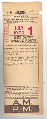 Title (ebay affiliate link): 1970 GATES AVE ROUTE B52 NYCTA BROOKLYN DIVISION BUS TO SUBWAY TRANSFER