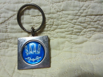 VINTAGE SQUARE BRASS with SAAB EMBLEM KEYCHAIN