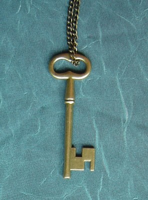 one vtg brass Skeleton Key bead Pendant bronze chain necklace 30" collection