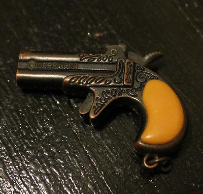 Title (ebay affiliate link): Vintage mini Derringer metal key chain cap gun engraved working