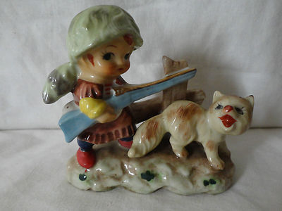 Vtg Japan Handpainted DAVY CROCKETT "Hunting a Fox" Quality Ceramic FIGURINE!