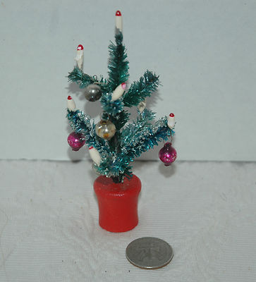 Title (ebay affiliate link): Vtg 5" Bottle Brush Christmas Tree Doll House Size Candles and Glass Ornaments