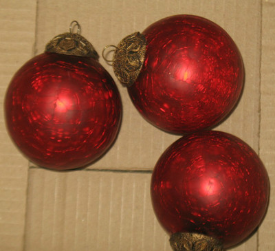 3 Kugel ornament Red Crackle Heavy Glass 3"