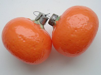 Antique russian Christmas transparent glass ornaments "2 mandarines "