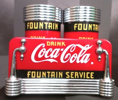 Title (ebay affiliate link): Coca-Cola Fountain Service Salt & Pepper Shakers with Holder X-MAS DELIVERY