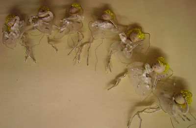 Vintage Angels Christmas Tree Toppers Ornament Spun Cotton Chenille Tuile 7pc