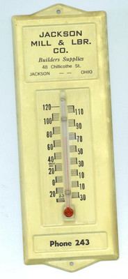 VINTAGE WEATHER THERMOMETER-Jackson Mill & LBR. Jackson,Ohio (3-DIGIT PHONE #
