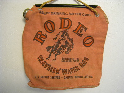 Title (ebay affiliate link): Vintage RODEO Traveler Canvas Water Bag Automotive Car Cowboy Bucking Horse