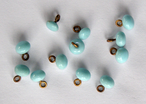 VINTAGE TINY AQUA GLASS DOLL BUTTON OLD ANTIQUE BEAD