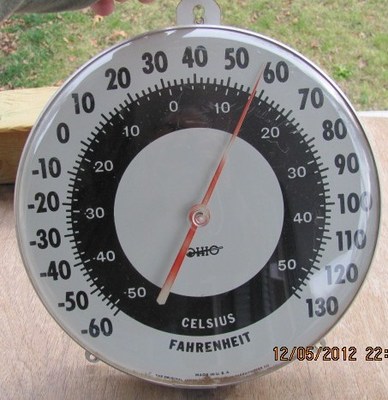 Title (ebay affiliate link): VINTAGE OUTSIDE THERMOMETER ROUND DIAL OHIO JUMBO -60 TO +130 LARGE DOME 1950's?