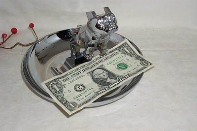 Vintage Chrome Mack Truck Hood Ornament Bulldog Tobacco Cigar Ashtray 7 1/4"