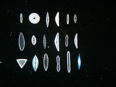 Title (ebay affiliate link): Microscope slide arranged diatoms arranged in 3 rows