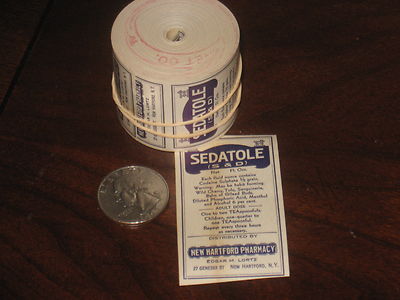 Title (ebay affiliate link): Narcotic!! Sharp Dohme SEDATOLE Drugstore Label Roll New Hartford Pharmacy