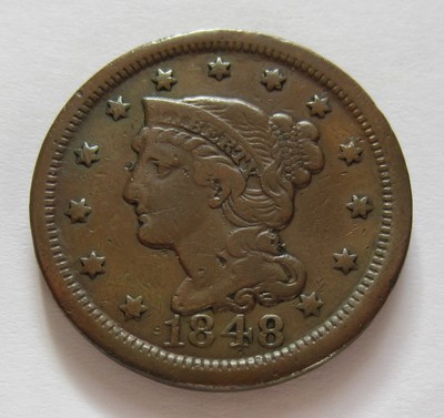 Title (ebay affiliate link): 1848 US Braided Hair Large Cent .01c - Nice Antique American Coin- Full Liberty
