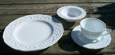 Title (ebay affiliate link): 1950's Indiana Milk Glass Four Piece Dinner Set-Orange Blossom Pattern-NICE FIND