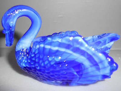 Cobalt blue & milk slag glass salt cellar hen chicken swan duck dish white celt