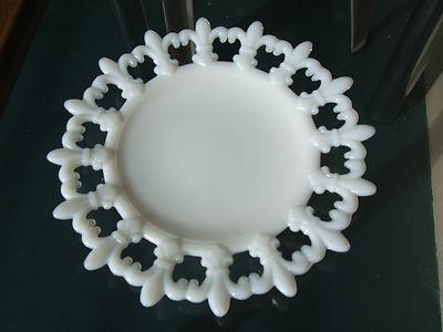 Title (ebay affiliate link): ANTIQUE MILK GLASS PLATE with FLEUR DE LIS RETICULATED RIM
