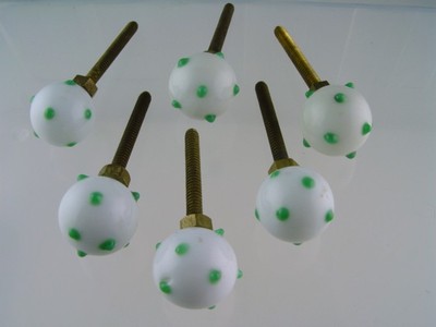 FABULOUS OLD MILK GLASS KNOBS WITH GREEN DOTS!
