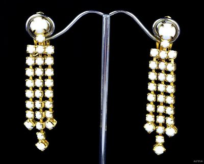 Title (ebay affiliate link): 1960s White Milk Glass Tassel Drop Earrings Vintage Jewellery Prom Bridal