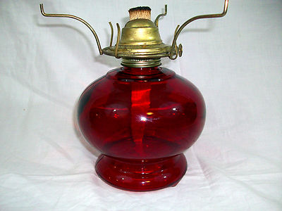 Title (ebay affiliate link): Vintage Ruby Red Kerosene Hurricane Oil Lamp by Jeannette Glass Depression Era