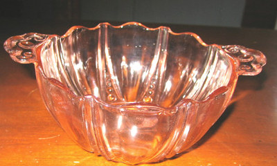 ANTIQUE PINK DEPRESSION GLASS PATTERN OYSTER & PEARL 2 HANDLE 5" BOWL