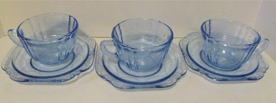 Title (ebay affiliate link): Three Cups & Saucers In Blue Madrid Pattern By Federal 1980's -Perfect Condition