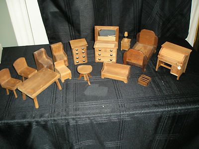 Title (ebay affiliate link): Wonderful Lot of 14 Pieces of Vintage Wood Doll House Furniture