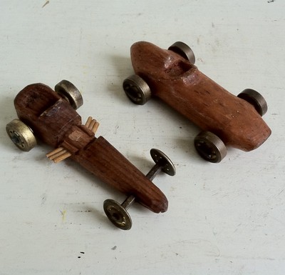 Title (ebay affiliate link): Vintage Handmade Pair Of Wooden Race Cars With Rolling Wheels