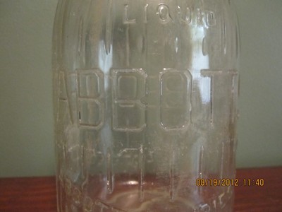 VINTAGE GLASS MILK bottle ABBOTTS quart raised letters