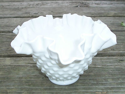 Title (ebay affiliate link): Fenton Milk Glass Ruffled Edge Bowl-Hobnail Pattern-Marked-Collectible-BEAUTY!!