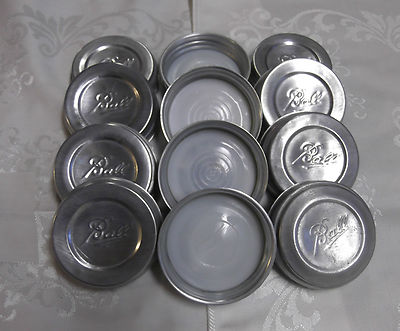 Title (ebay affiliate link): 12 ZINC BALL CANNING JAR LIDS CAPS FOR MASON JARS~PORCELAIN MILK GLASS LINED