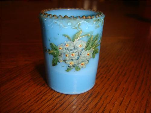 Title (ebay affiliate link): VINTAGE MILK GLASS BLUE TOOTHPICK HOLDER BEADED TOP SLAG GLASS GORGEOUS L@@K MNT