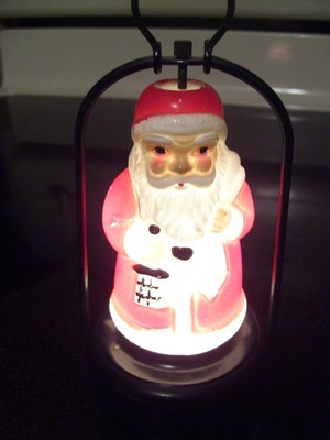 AMICO Japan Santa Claus Milk Glass and Tin Lantern