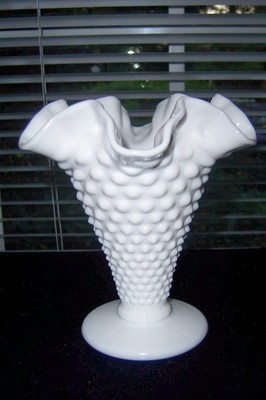 Title (ebay affiliate link): Fenton White Milk Glass Hobnail Ruffle Rim Footed Trumpet Vase 2 Available EXC!