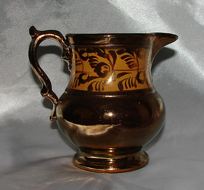 19TH C PINK SUNDERLAND COPPER LUSTRE CREAMJUG ORANGE BAND