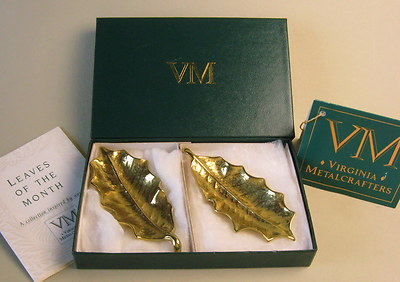 Title (ebay affiliate link): Mint in box Virginia Metalcrafters VMC January Holly leaves 3-35 brass dishes