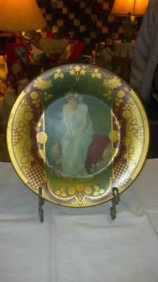 ANTIQUE ROYAL SAXONY VIENNA TIN ART PLATE #103 IN GEDANKEN