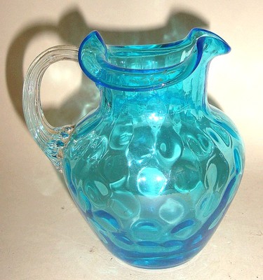4-1/2" Blue Dot Optic Pitcher, with Applied Clear Reed Handle