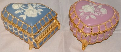 Title (ebay affiliate link): 2 SPLENDID Porcelain on Gold Music Boxes Piano & Heart plays MEMORIES & TITANIC