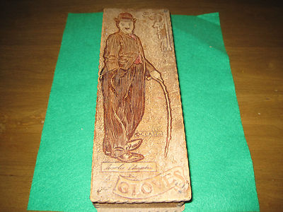 ANTIQUE CHARLIE CHAPLIN Wood Burn Burned HINGED dresser GLOVE BOX Pyrography