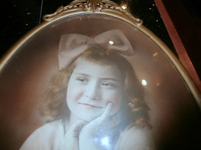Title (ebay affiliate link): Vintage Bubble Glass Convex Frame w/ Victorian Girl & Big Bow in Hair Photo