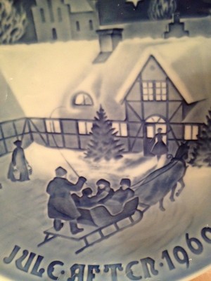 Title (ebay affiliate link): 1969 Decorative Plate "Arrival of Christmas Guests" made in Denmark - 8000/9069