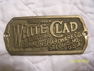 ANTIQUE ORIGINAL BRASS WHITE CLAD ICE BOX SIMMONS HARDWARE SIGN KEEN KUTTER