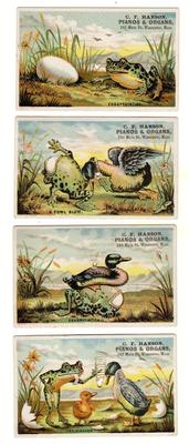 Lot of 4 C.F. HANSON PIANOS Main St. WORCESTER MA Trade Cards FROG EGG DUCK