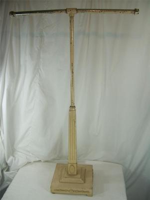 Title (ebay affiliate link): Antique Vintage Department Store Display Wood Stand+Cast Iron Rug Quilt