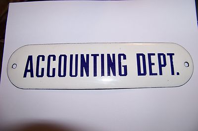 Title (ebay affiliate link): VINTAGE ACCOUNTING DEPT PORCELAIN ENAMELED SIGN WALL DESK PLAQUE