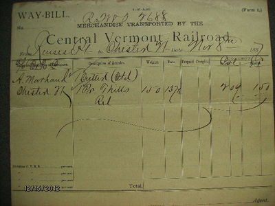 CENTRAL VERMONT RAILROAD 1887 WAY BILL